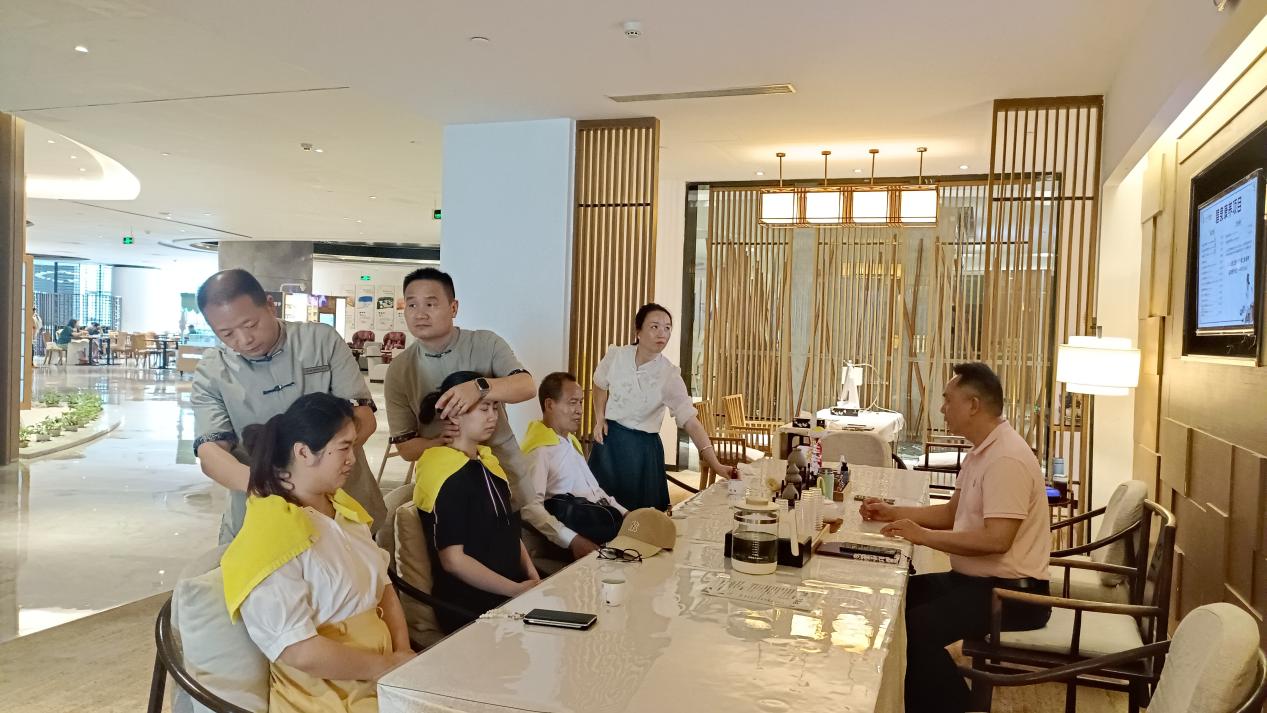 企業(yè)技術(shù)骨干現(xiàn)場演示了中醫(yī)靶向推拿技法,通過精準(zhǔn)穴位的刺激、精油的應(yīng)用與手法的調(diào)理,展示了中醫(yī)特色療法的獨(dú)特優(yōu)勢。教師代表積極參與互動,親身體驗(yàn)傳統(tǒng)技藝與現(xiàn)代健康理念的結(jié)合。