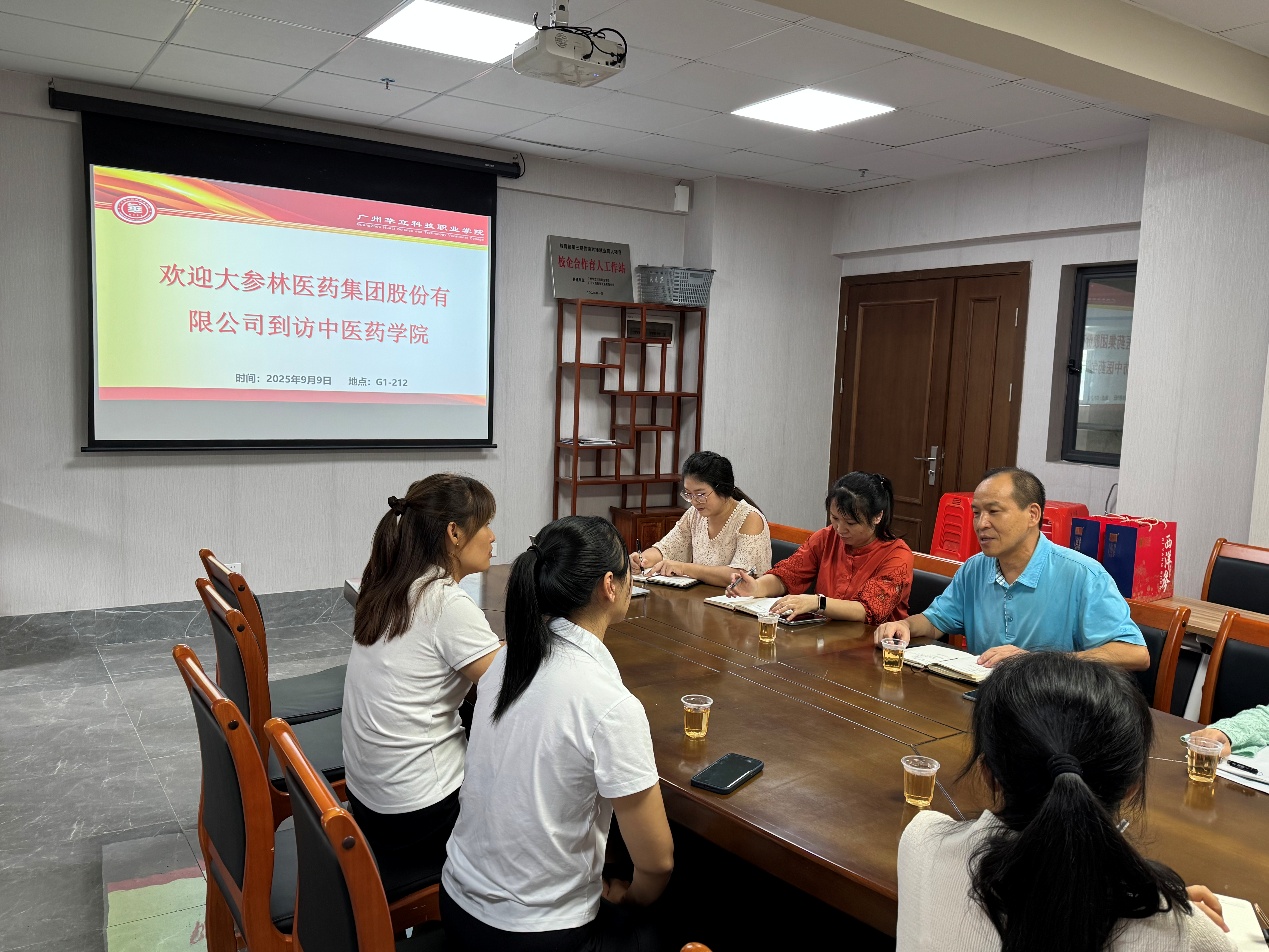 2025年9月9日,大參林醫(yī)藥集團(tuán)股份有限公司代表一行到訪中醫(yī)藥學(xué)院,雙方就人才培養(yǎng)、實習(xí)就業(yè)、科研項目、學(xué)生競賽等方面展開了深入交流與探討。