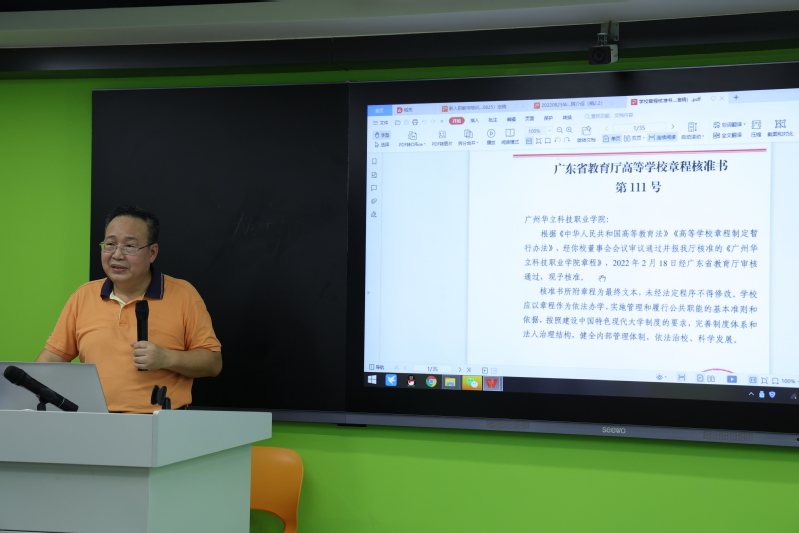 接著,工會(huì)副主席朱少先對(duì)學(xué)校的基本情況作了一個(gè)全面簡(jiǎn)介,包括學(xué)校的發(fā)展簡(jiǎn)史、職能部門及二級(jí)學(xué)院的分布情況等,重點(diǎn)介紹了學(xué)校的辦學(xué)理念和學(xué)校文化,帶領(lǐng)大家一同學(xué)習(xí)學(xué)校章程,希望新入職教師通過培訓(xùn)了解華立文化,盡快融入華立大家庭。
