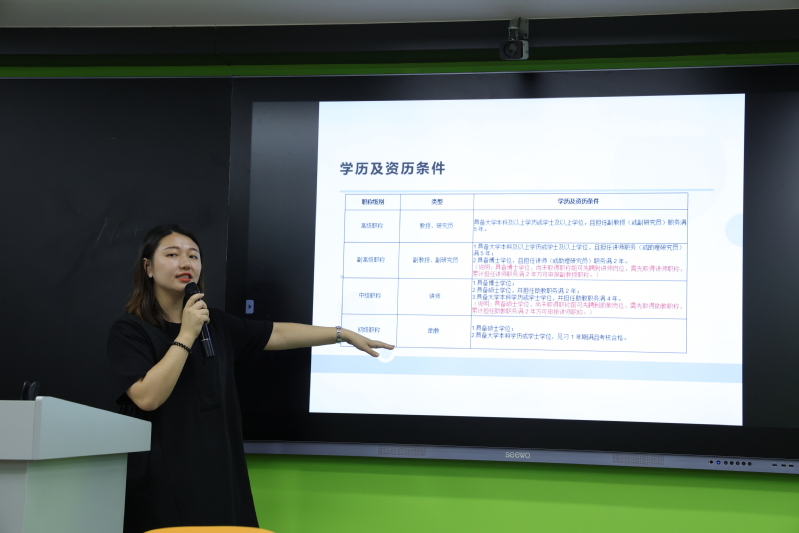 隨后,人事處張?jiān)啡A老師、凌志斌老師、阮穎怡老師及廖玲彬老師依次介紹了人事管理相關(guān)制度及辦事指南,包括薪酬福利、OA系統(tǒng)使用、居住證辦理、人才引進(jìn)系統(tǒng)操作、崗前培訓(xùn)、教師資格證認(rèn)定、職稱評(píng)審等。