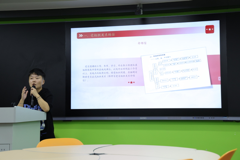 然后,黨委辦公室朱方方老師為大家講解了黨組織關(guān)系轉(zhuǎn)接注意事項(xiàng)及新教師入黨流程,并要求各位黨員同志不忘初心,牢記使命、提升自身修養(yǎng),強(qiáng)化自身建設(shè)、有堅(jiān)定的政治立場(chǎng),保持良好的作風(fēng),同時(shí)鼓勵(lì)各位新老師積極向黨組織靠攏。