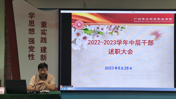 為全面系統(tǒng)總結(jié)我校各部門2022-2023學(xué)年工作,進(jìn)一步提升中層干部履職盡責(zé)的能力,促進(jìn)我校各項(xiàng)事業(yè)持續(xù)健康發(fā)展,8月28日,學(xué)校召開了2022-2023學(xué)年中層干部述職大會。廣州校區(qū)在圖書館104會議室舉行,云浮校區(qū)在圖書館七樓會議室連線同步進(jìn)行,全體校級領(lǐng)導(dǎo)和中層干部參加本次述職會,會議由易健民校長主持。