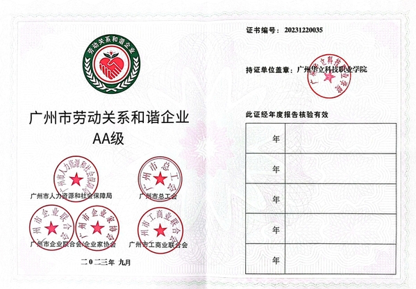近日,經(jīng)廣州市人力資源和社會保障局、廣州市總工會、廣州市企業(yè)聯(lián)合會/企業(yè)家協(xié)會、廣州市工商業(yè)聯(lián)合會初審、復(fù)審和公示,我校獲評2023年度“廣州市勞動關(guān)系和諧企業(yè)AA級”稱號。這是我校首次取得該項榮譽,體現(xiàn)評審機構(gòu)對我校依法治校、依法保障員工利益、構(gòu)建和發(fā)展和諧勞動關(guān)系等方面工作的充分肯定。