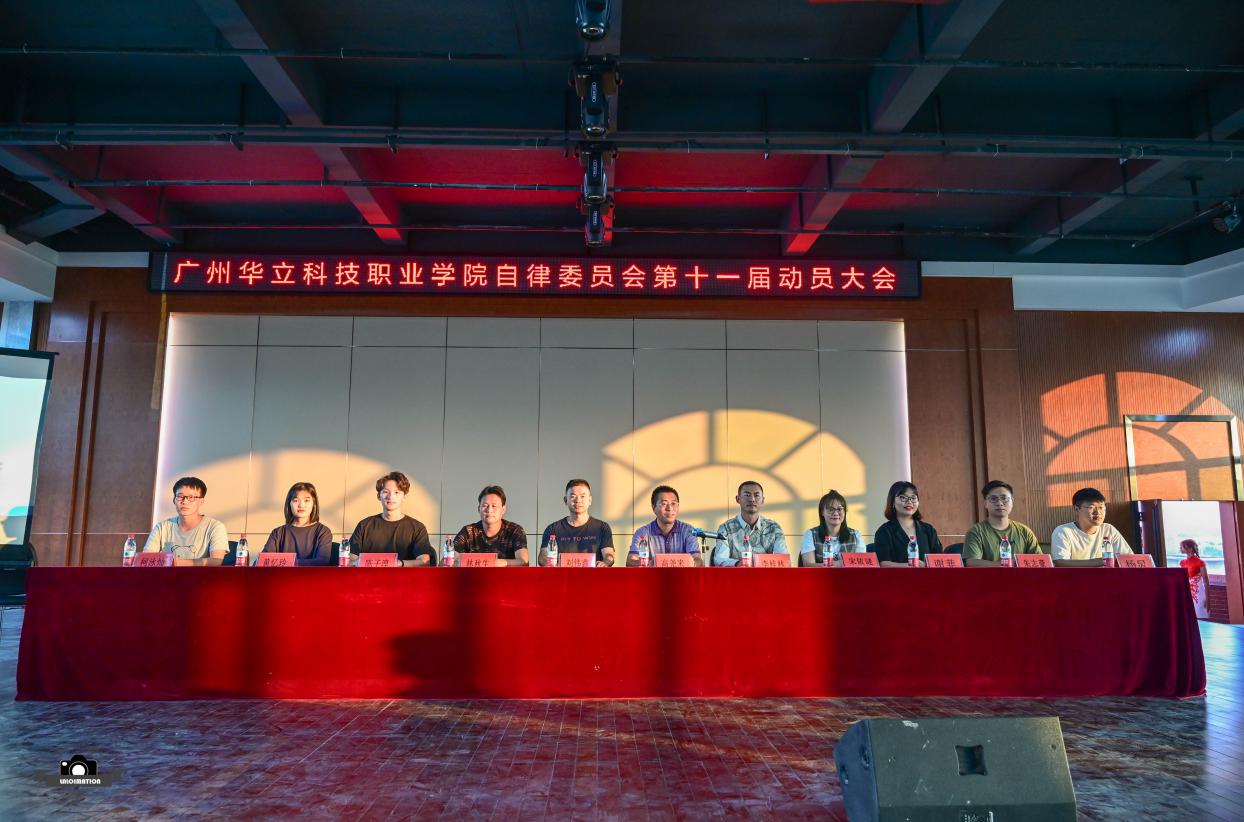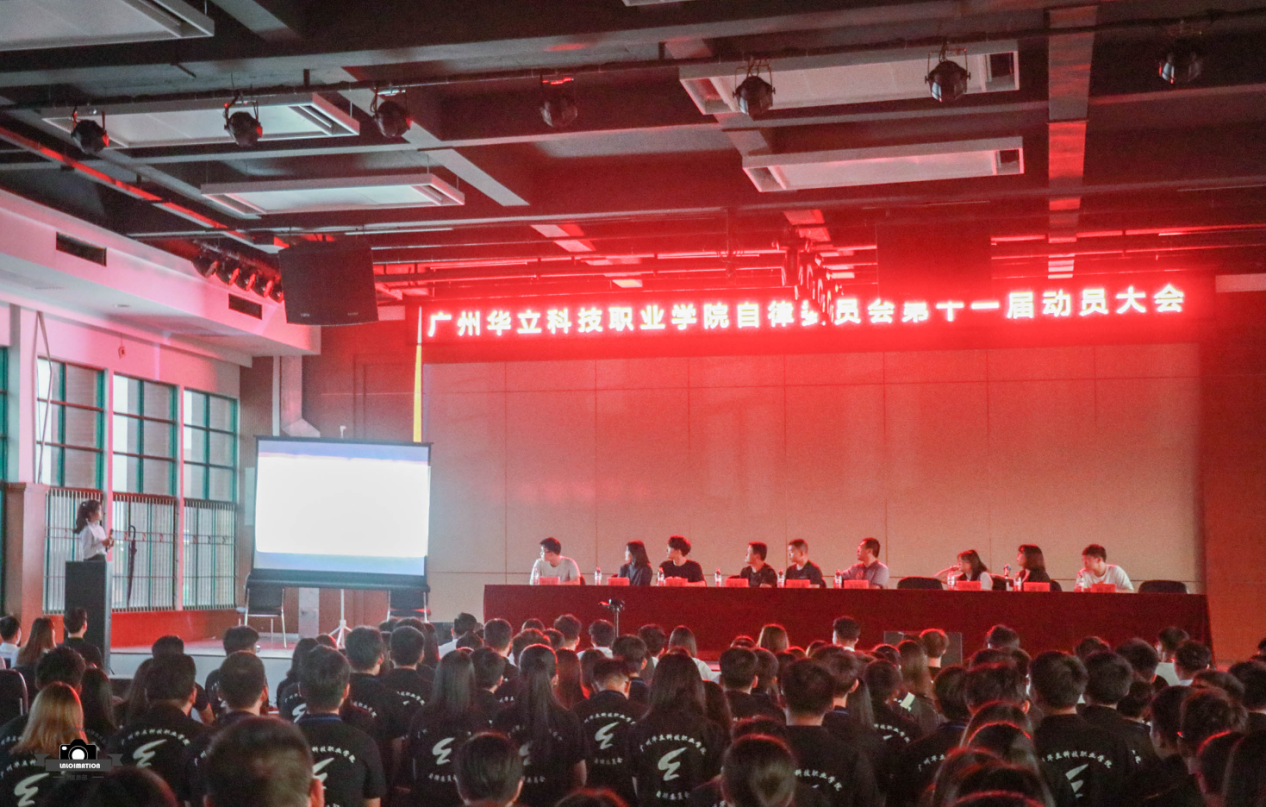 自律委員會第十一屆動員大會于2019年10月17號(星期四) 17時30分在圖書館八樓舉行,蒞臨本次大會的領導有:廣州華立科技職業(yè)學院高堯來院長、健康學院院長李桂林老師、健康學院學管主任宋依謎老師、國際經濟與外語學院學管主任劉偉鑫老師、電力與智能制造學院學管主任林秋生老師、生活指導科老師謝菲老師、城建學院輔導員朱志豪老師、藝術與傳媒學院輔導員柯泳燦老師、生活指導科實習老師黃憶玲老師、生活指導科實習老師陳子淳老師、保衛(wèi)科實習老師楊炅老師以及各校級組織與學院代表。
