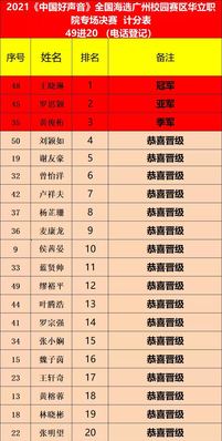 最后,讓我們預(yù)祝晉級(jí)的選手們?cè)谙乱浑A段的廣州市賽中再接再厲,展現(xiàn)更加完美的自己,為自己、學(xué)校爭得更大的榮譽(yù)!