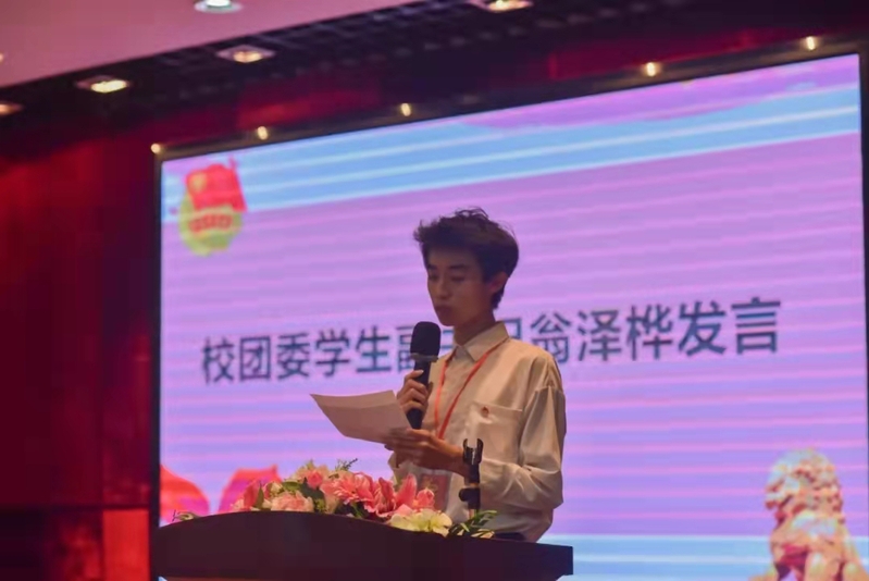 接著校團(tuán)委書記處副書記翁澤樺同學(xué)上臺(tái)發(fā)言,他表示將秉承“引領(lǐng)思想、服務(wù)同學(xué)、鍛煉自我”的宗旨,要以負(fù)責(zé)任的態(tài)度對(duì)待各項(xiàng)工作,從嚴(yán)要求自己,共同為學(xué)校的發(fā)展作建設(shè),隨后他帶領(lǐng)全體團(tuán)委成員進(jìn)行宣誓。