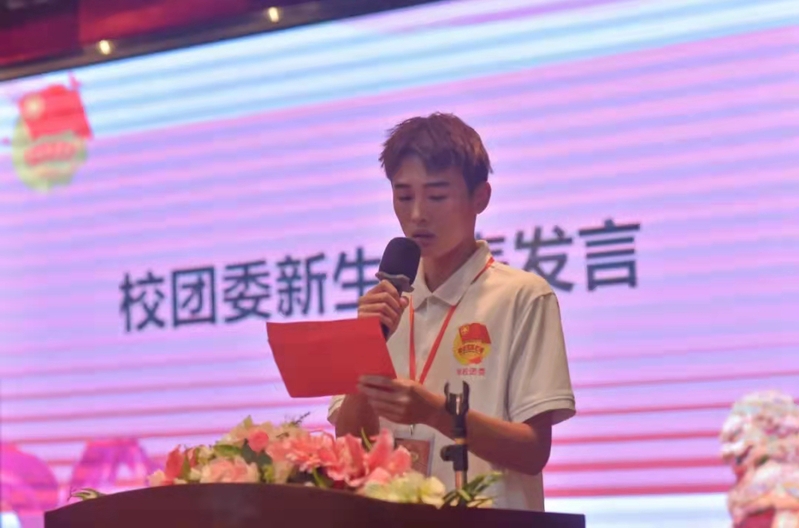 緊接著由校團(tuán)委新生代表潘政謀同學(xué)上臺(tái)發(fā)言,他說生活是最好的老師,我們作為新一代的青年應(yīng)當(dāng)磨煉勵(lì)志、 鍛煉自己、端正自己的態(tài)度、為校團(tuán)委貢獻(xiàn)自己最大的力量。