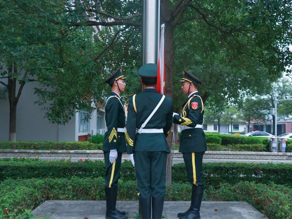 主持人宣布升旗儀式正式開始,國旗護衛(wèi)隊成員邁著鏗鏘有力的步伐來到國旗臺下,隨著國歌響起,鮮艷的五星紅旗冉冉升起,迎風飄揚,所有同學面向國旗行注目禮。