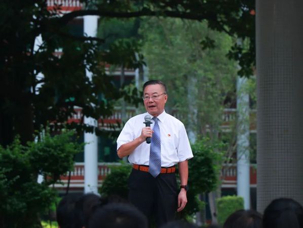隨后,由學校黨委書記林偉健教授作國旗下的講話,書記代表學校全體教師向同學們表示問候!同時向同學們提了幾點希望: