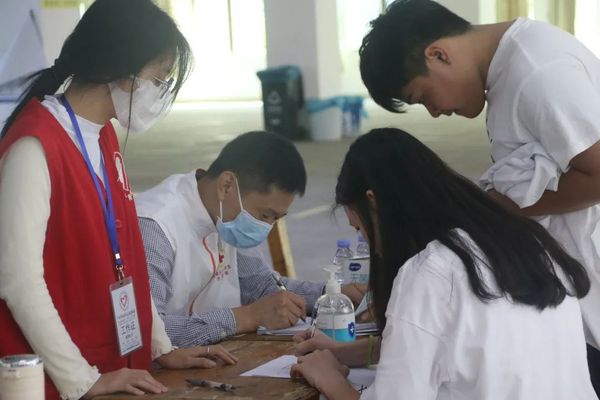 工作人員為獻(xiàn)血成功的同學(xué)們進(jìn)行登記,頒發(fā)獻(xiàn)血證并贈(zèng)送小禮品(無償獻(xiàn)血是指為拯救他人生命,志愿將自身的血液無私奉獻(xiàn)給社會公益事業(yè),而獻(xiàn)血者不收取報(bào)酬的行為。但是,獻(xiàn)完血后,領(lǐng)取小紀(jì)念品是合理的)。