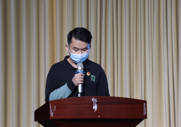 團(tuán)委書(shū)記鄭慶國(guó)老師向大會(huì)報(bào)告經(jīng)濟(jì)管理學(xué)院團(tuán)委2021-2022學(xué)年工作情況