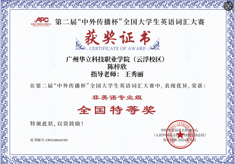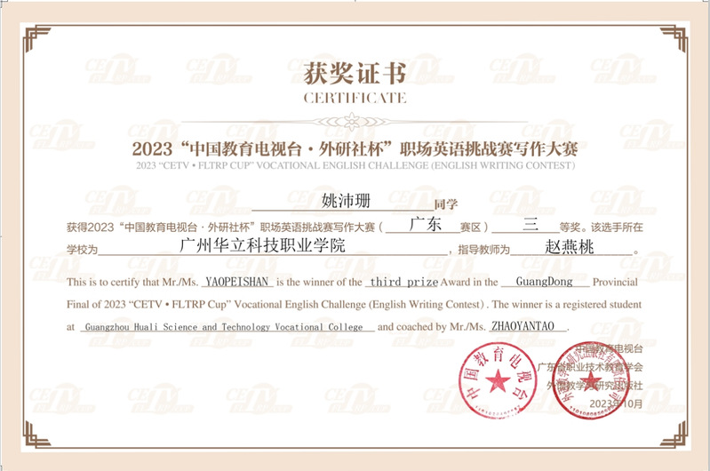 我們擁有一支優(yōu)秀負責的教學團隊,每年獲獎眾多,包括全國大學生英語寫作大賽國家級一等獎,省級二等獎,省級三等獎;全國大學生演講比賽省級二等獎,三等獎;全國大學生翻譯比賽國家級二等獎等!期待你登上舞臺,展示自我!