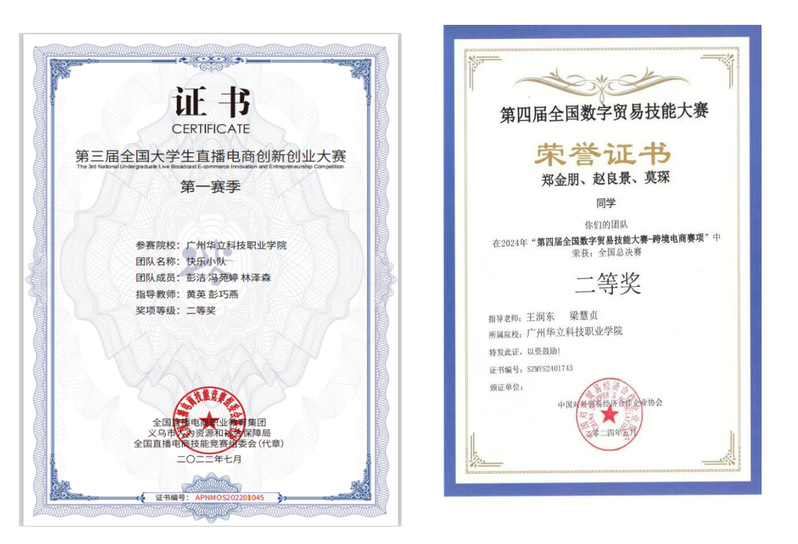 職業(yè)技能證書:電商直播銷售員證、“1+X”網(wǎng)店運營推廣職業(yè)技能證書、“1+X”直播電商職業(yè)技能證書、互聯(lián)網(wǎng)營銷師等