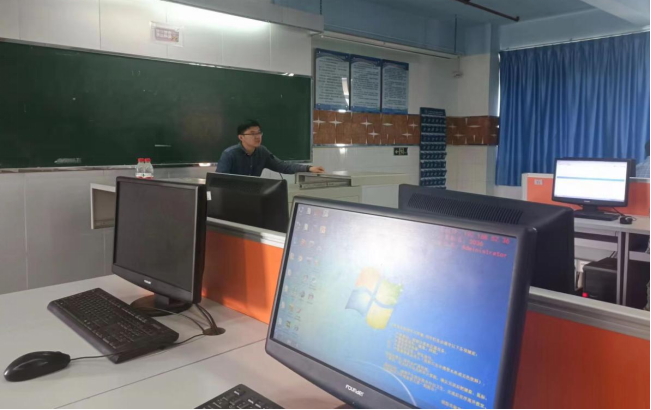 圖:任課老師與平臺(tái)管理人員認(rèn)真聽(tīng)講
