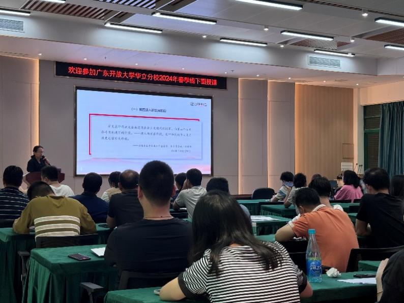 面授課開課:見面會結束后,按計劃為新生們安排了由林志老師主講《廣東開放大學學習指引》,薛德玲老師主講《形勢與政策》和《思想道德與法治》共三門課程的面授課教學。所有面授課老師準備充分,充滿激情,學員專注認真。