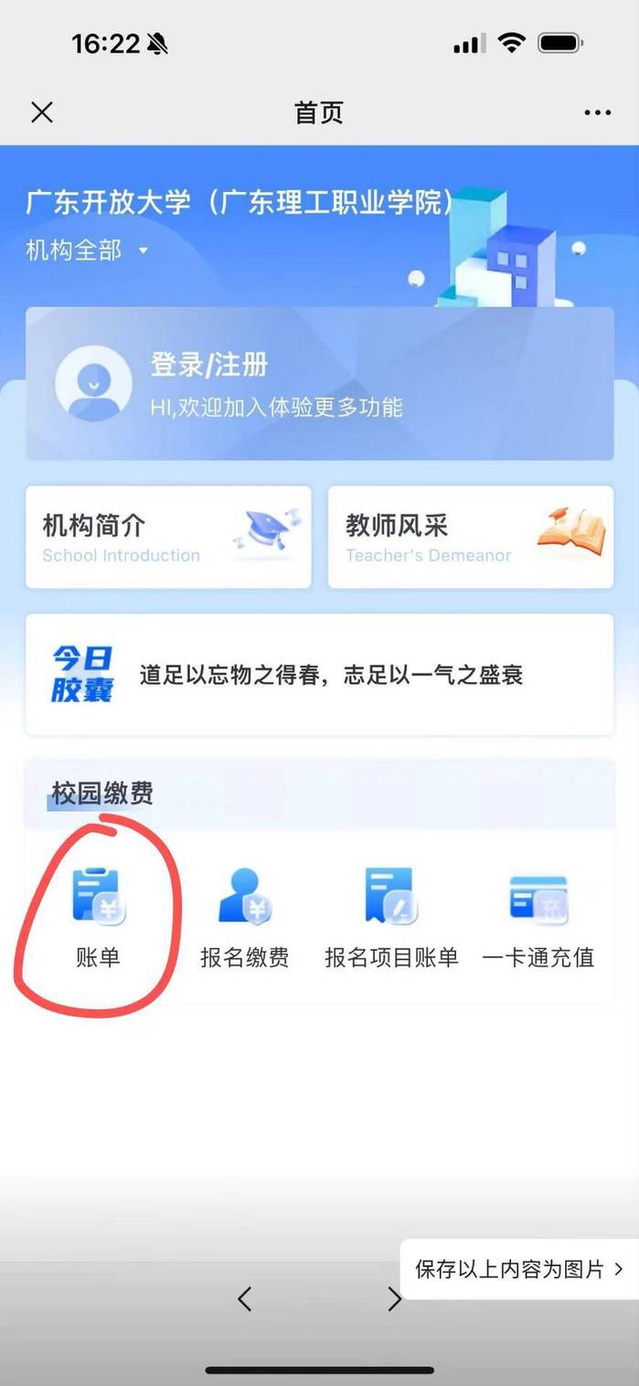 學(xué)生關(guān)注學(xué)校微信公眾號(hào)“廣東開放大學(xué)”--→“微招生”--→“學(xué)生繳費(fèi)”