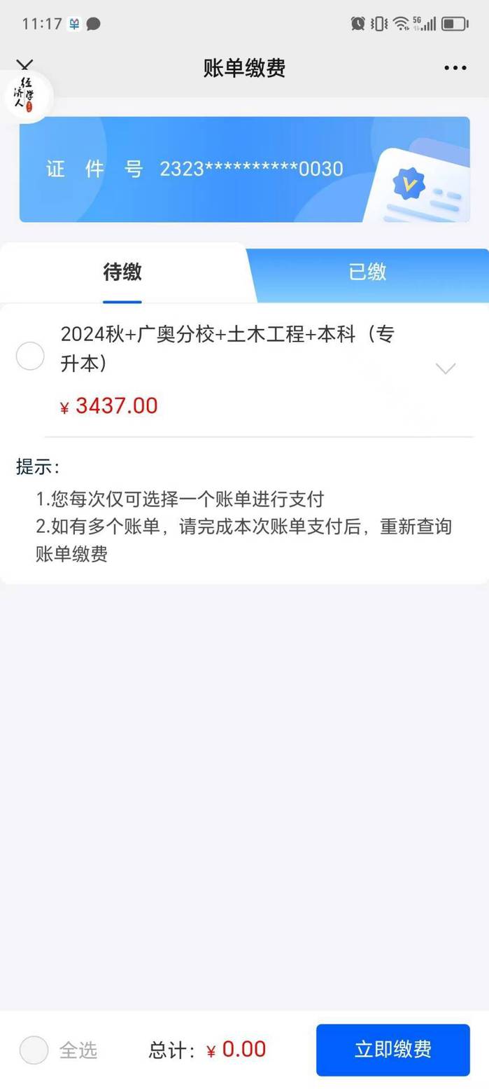 進(jìn)行交費(fèi),交費(fèi)時(shí)請(qǐng)核對(duì)金額。