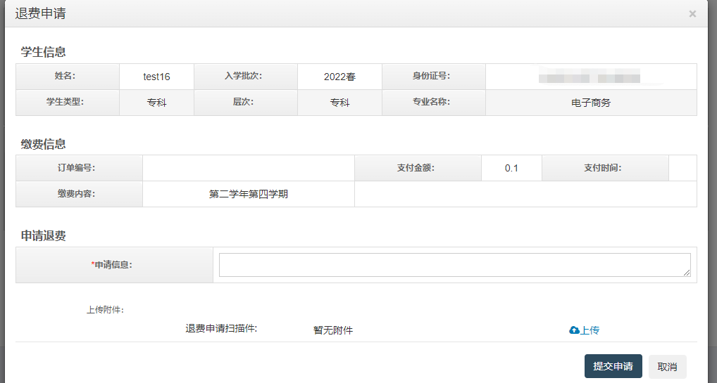 操作路徑:新生退費(fèi)管理>>退費(fèi)申請。
