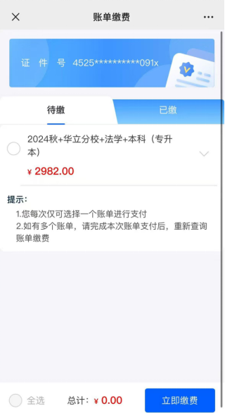 進(jìn)行交費(fèi),交費(fèi)時(shí)請核對金額。