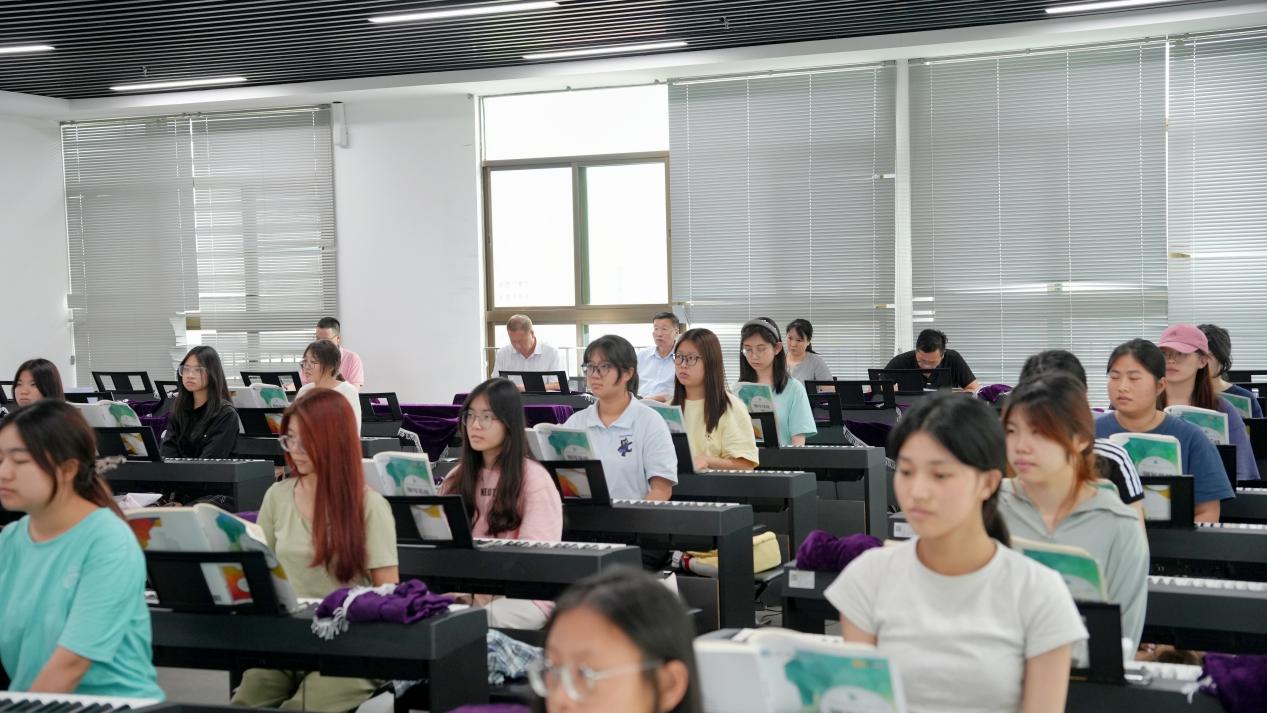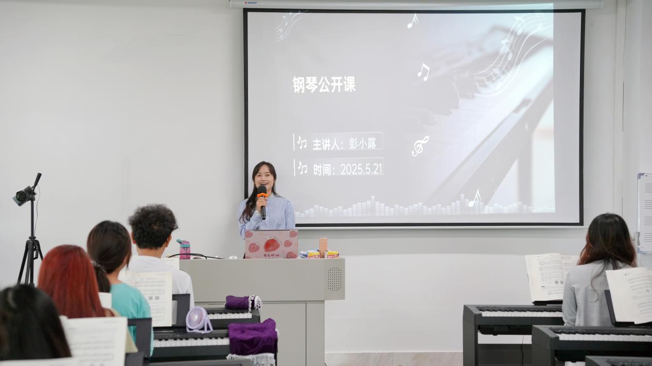 5月21日下午,彭小露老師的《鋼琴基礎(chǔ)》公開課在科技樓902教室開講。彭老師憑借豐富的教學(xué)經(jīng)驗(yàn),以生動(dòng)有趣的方式講解鋼琴基礎(chǔ)知識(shí),從識(shí)譜到指法訓(xùn)練,循序漸進(jìn)、耐心細(xì)致。課堂中,她巧妙運(yùn)用多媒體教學(xué)手段,將抽象的音樂(lè)理論形象化、具體化,不僅能讓學(xué)生們輕松掌握鋼琴演奏的基本技能,更能培養(yǎng)學(xué)生們的音樂(lè)審美能力和藝術(shù)表現(xiàn)力,為學(xué)生們今后從事學(xué)前教育工作打下堅(jiān)實(shí)基礎(chǔ)。