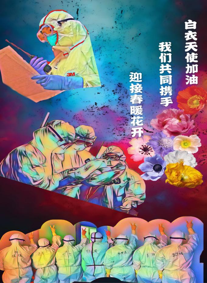 面對華夏同胞眾志成城、齊心合力抗擊疫情的堅毅勇氣和同舟共濟、生命至上的人性光輝,如何在藝術設計中貫注真情、直面時艱,如何建構設計中的創(chuàng)意表現(xiàn),當代圖式,使作品真正起到凝聚人心、鼓舞斗志的作用,成為藝術與傳媒學院師生當下開展網(wǎng)課教學應該學習和思考的問題。