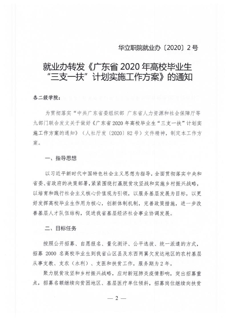 就業(yè)辦轉(zhuǎn)發(fā)2020年廣東省高校畢業(yè)生“三支一扶“計劃實施方案的通知,華立就業(yè)辦【2020】2號附件.docx