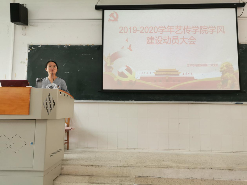 2019年10月9日中午,趁剛過完國慶假期,藝術(shù)與傳媒學(xué)院召開2019—2020年第一學(xué)期思政第一課暨學(xué)院學(xué)風(fēng)建設(shè)大會,本次大會出席的領(lǐng)導(dǎo)為:藝術(shù)與傳媒學(xué)院第二黨支部書記——胡彩霞老師。出席此次會議的成員有:藝傳黨建小組,18屆班干代表,19屆班干代表,18屆輔導(dǎo)員助理。