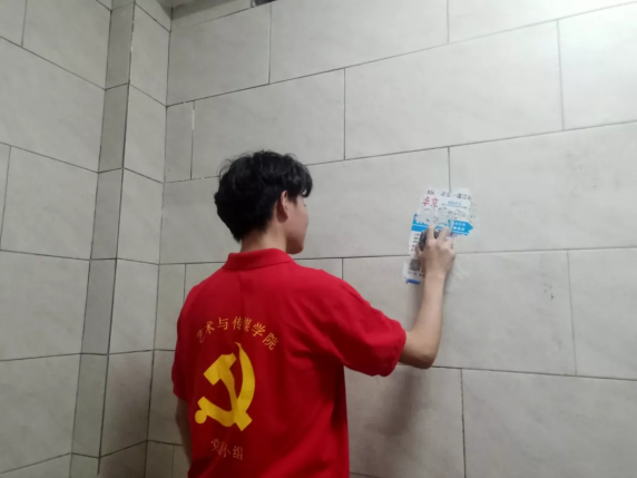 為營(yíng)造整潔、優(yōu)美的宿舍環(huán)境,藝術(shù)與傳媒學(xué)院黨建小組依據(jù)“五個(gè)一”主題,聯(lián)合藝傳學(xué)院學(xué)生會(huì)各部門派出兩個(gè)新干事,發(fā)起美我校園,你我同行的主題活動(dòng)。于2019年11月7日下午組織部門新干事到新2、新3宿舍清理小廣告。