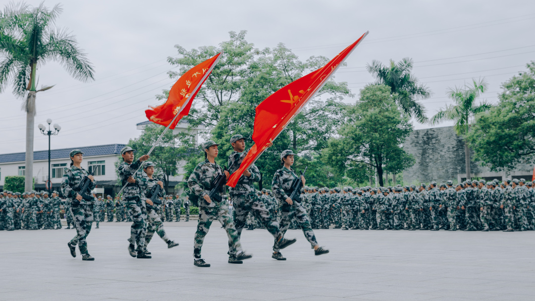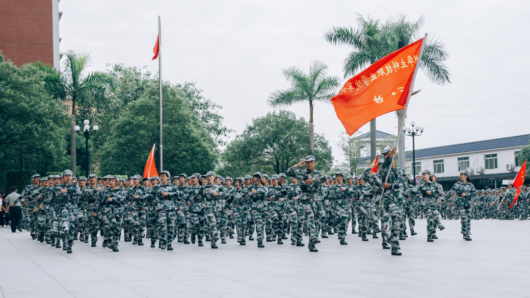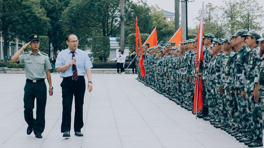 2020級(jí)學(xué)生軍訓(xùn)成果匯報(bào)及總結(jié)表彰大會(huì)在綜合樓前舉行