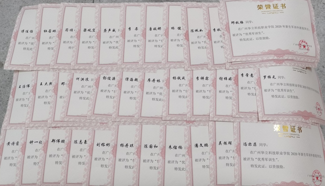 邱秋梅、徐靜宜、李秋燕、梁觀宏等36名同學(xué)在2020年新生軍訓(xùn)中表現(xiàn)突出,被評(píng)為“優(yōu)秀軍訓(xùn)生”。