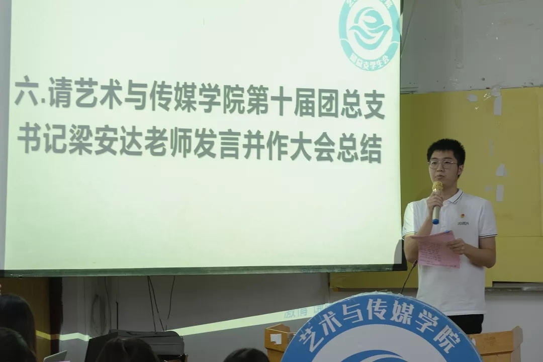 梁安達(dá)書記大會(huì)做總結(jié)發(fā)言:首先感謝校領(lǐng)導(dǎo),老師的大力關(guān)懷與教導(dǎo),感謝藝傳學(xué)院團(tuán)總支學(xué)生會(huì)第九屆全體學(xué)生干部的辛勤付出,為了今后團(tuán)總支學(xué)生會(huì)工作更好發(fā)展,在此對(duì)干部和新干事提出幾點(diǎn)要求: