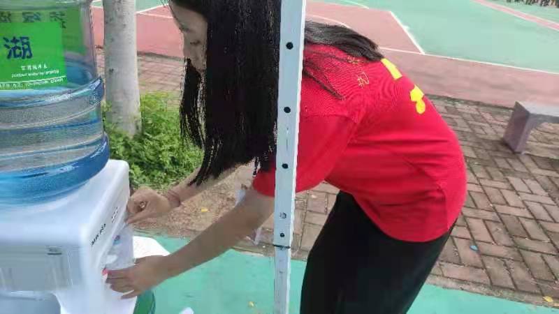 在訓(xùn)練的中場(chǎng)休息時(shí)間,黨建小組成員為新生們派送清涼的礦泉水,為軍訓(xùn)中的新生帶來(lái)一絲涼意。為深入了解新生生活情況,促進(jìn)新生更好的融入集體環(huán)境,黨建小組成員在和新生的交流過(guò)程中,了解到了新生的興趣愛(ài)好、飲食和休息時(shí)間,同時(shí)也向新生們介紹校園各區(qū)域的功能使用方法。