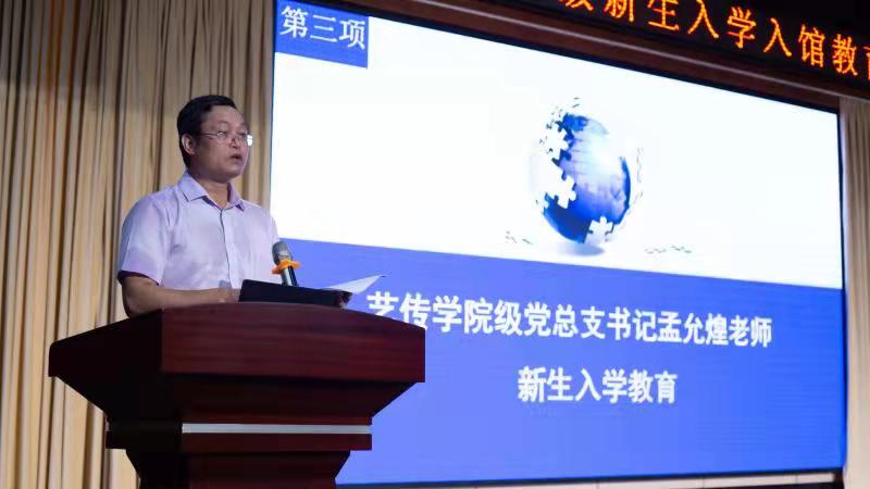 本次活動(dòng)分為6個(gè)流程。首先,孟允煌副院長(zhǎng)代表藝傳學(xué)院全體教師對(duì)新同學(xué)表示熱烈的歡迎,并從宏觀和微觀方面,對(duì)同學(xué)們提出期望與要求:
