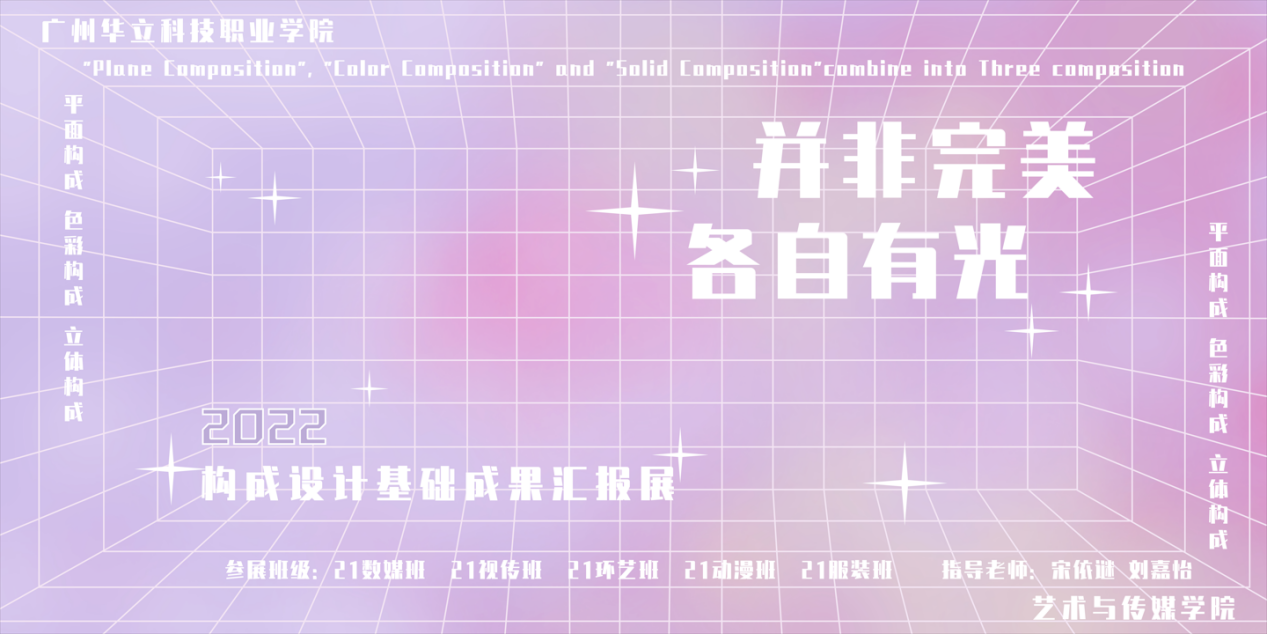 2022年6月28日,廣州華立科技職業(yè)學院藝術與傳媒學院在西三樓下開展“并非完美,各自有光”2022構成設計基礎成果匯報展。