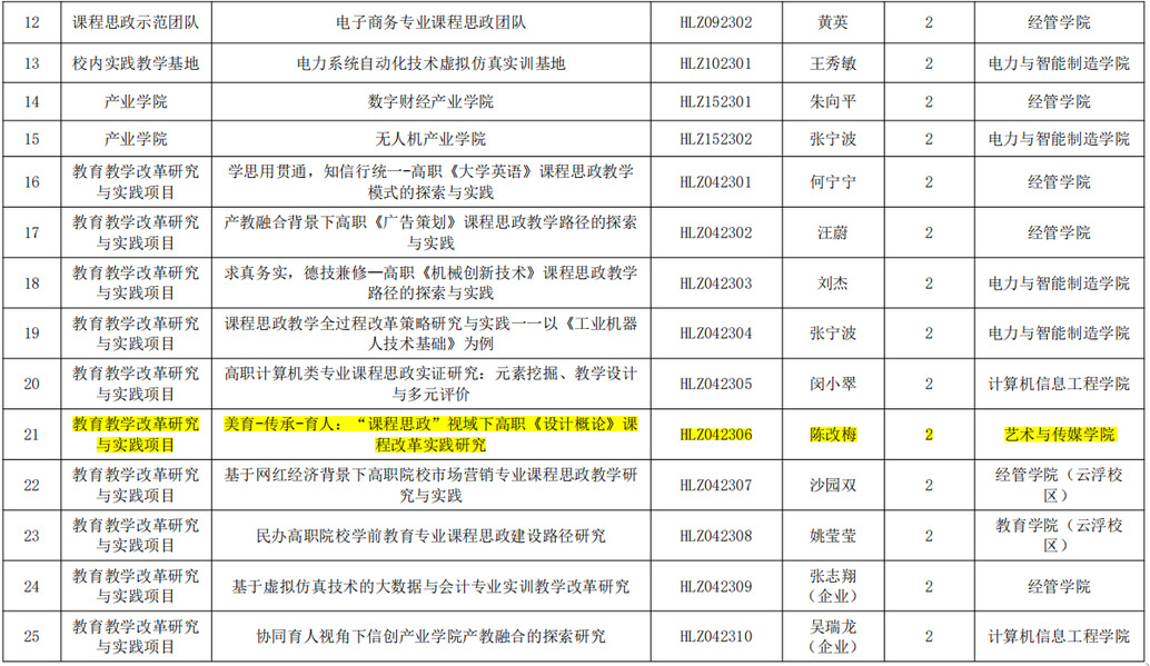 根據(jù)《關(guān)于組織開展2023年校級職業(yè)教育教學(xué)質(zhì)量與教學(xué)改革工程項目申報的通知》(華立職院〔2023〕93號 ),經(jīng)教師個人申報、二級學(xué)院和系部推薦、教務(wù)處形式審查、專家評審、校內(nèi)公示等環(huán)節(jié),現(xiàn)將2023年校級高等職業(yè)教育教學(xué)質(zhì)量與教學(xué)改革工程(以下簡稱“校質(zhì)量工程”)項目立項名單予以公布(附件1)。