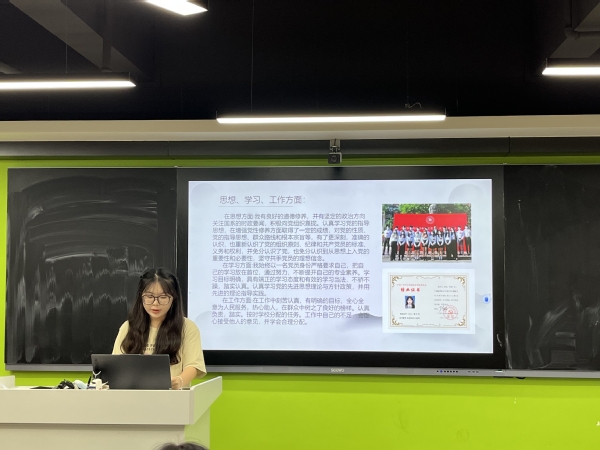 評選會上,6名候選同學通過線上線下相結(jié)合的方式進行了PPT展示,向各位評審老師介紹了自己在校期間的學業(yè)成績、學生工作經(jīng)歷、獲得榮譽、社會實踐、創(chuàng)新創(chuàng)業(yè)等情況。他們從容不迫的氣度、鏗鏘有力的發(fā)言無不凸顯著新時代中國青年的意氣風發(fā)。
