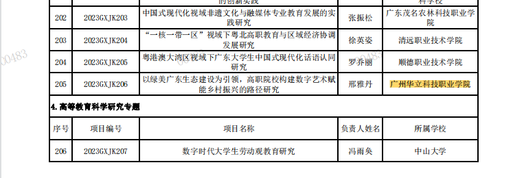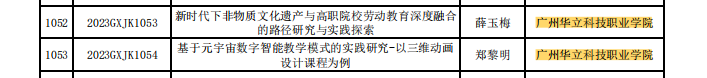 近日,廣東省教育科學(xué)規(guī)劃領(lǐng)導(dǎo)小組辦公室發(fā)布了2023年度教育科學(xué)規(guī)劃課題(高等教育專項(xiàng))立項(xiàng)名單,其中我院邢雅丹老師申報(bào)的《以綠美廣東生態(tài)建設(shè)為引領(lǐng),高職院校構(gòu)建數(shù)字藝術(shù)賦能鄉(xiāng)村振興的路徑研究》項(xiàng)目、鄭黎明老師申報(bào)的《基于元宇宙數(shù)字智能教學(xué)模式的實(shí)踐研究-以三維動(dòng)畫設(shè)計(jì)課程為例》項(xiàng)目成功立項(xiàng)。