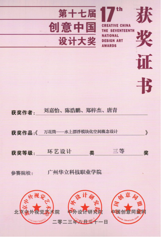 在校領(lǐng)導及教務處的大力支持和指導下,我院師生通過共同努力,取得了優(yōu)異的成績。共獲得2023年度中國設計教育成果獎1項;服飾設計類、工業(yè)設計類、綜合設計類、平面設計類、環(huán)藝設計類獲獎教師組二等獎1項、三等獎6項、優(yōu)秀獎2項;學生組三等獎6項、優(yōu)秀獎10項。馬俊、陳改梅、邢雅丹、劉嘉怡、宋依謎、姜兵、馬英超、謝瑞祥等被評為優(yōu)秀指導教師。