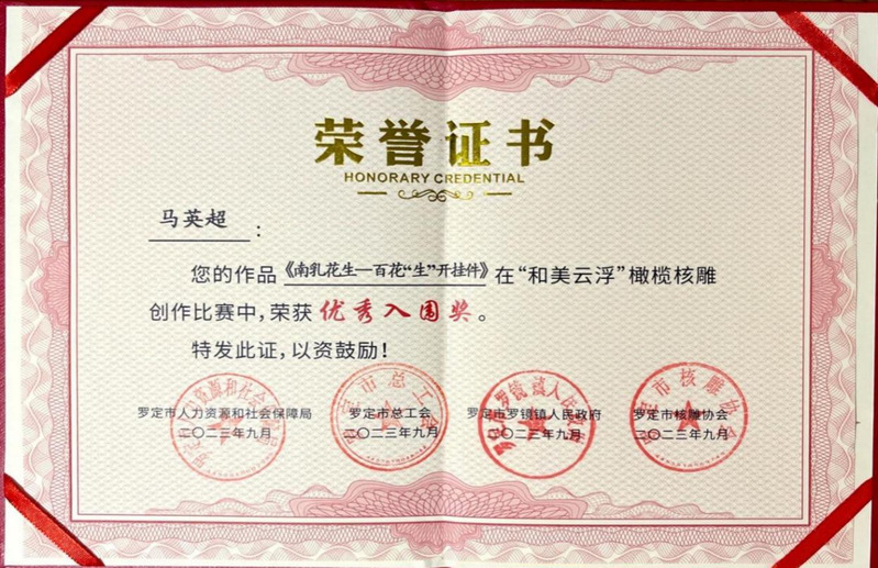 “和美云浮”橄欖核雕大賽,由云浮市文學(xué)藝術(shù)界聯(lián)合會(huì)指導(dǎo),羅定市人力資源和社會(huì)保障局、羅定市總工會(huì)、羅定市羅鏡鎮(zhèn)人民政府、羅定市核雕協(xié)會(huì)、云浮市民間文藝家協(xié)會(huì)聯(lián)合主辦。大賽參照工藝品雕刻工國(guó)家職業(yè)技能高級(jí)工標(biāo)準(zhǔn),以體現(xiàn)橄欖核雕藝術(shù)特點(diǎn)、兼具實(shí)用性、觀賞性和展示性為原則。大賽考量創(chuàng)作者的主題思想把握、核雕藝術(shù)特色、工藝手法技巧、藝術(shù)創(chuàng)意水平、形象空間美感等。自“和美云浮”橄欖核雕創(chuàng)作比賽啟動(dòng)以來(lái),得到來(lái)自:吉林、廣州、韶關(guān)、番禺和云浮市、羅定等廣大核雕創(chuàng)作藝人的積極響應(yīng)和廣泛參與,經(jīng)過(guò)1個(gè)多月的預(yù)賽和決賽比拼,9月24日,在“慶豐收促和美”—2023 廣東云浮·羅定稻米金香暨第二屆橄欖核雕文化活動(dòng)啟動(dòng)儀式上,公布了結(jié)果并舉行頒獎(jiǎng)儀式。