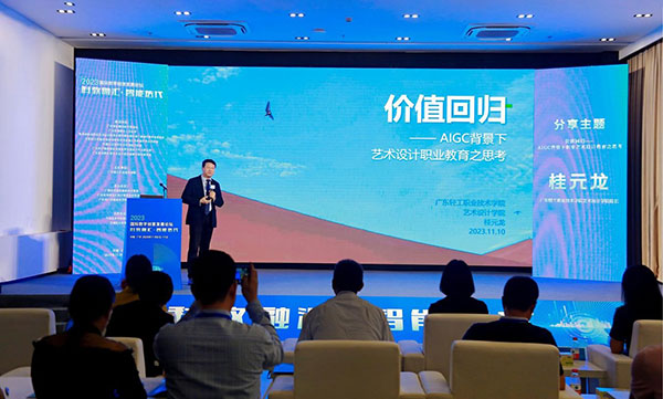 在論壇期間,還舉辦了多個分論壇和研討會,涵蓋了數(shù)字創(chuàng)意產(chǎn)業(yè)的多個領(lǐng)域。廣東輕工職業(yè)技術(shù)學院藝術(shù)設(shè)計學院院長桂元龍以《價值回歸——AIGC背景下藝術(shù)設(shè)計職業(yè)教育之思考》為題進行了精彩的分享與研討。此次論壇為我校數(shù)字藝術(shù)設(shè)計教學的改革和發(fā)展提供了一個廣闊的視野和寶貴的契機,通過深入探討和交流為數(shù)字產(chǎn)業(yè)的未來發(fā)展提供了新的思路和方向。我校將強化與行業(yè)企業(yè)的全方位、深層次、多形式合作,促進專業(yè)優(yōu)化、人才培養(yǎng)與產(chǎn)業(yè)需求匹配,促進科技資源創(chuàng)新性發(fā)展,期待著數(shù)字創(chuàng)意產(chǎn)業(yè)在未來的發(fā)展中能夠不斷取得新的突破和成就。