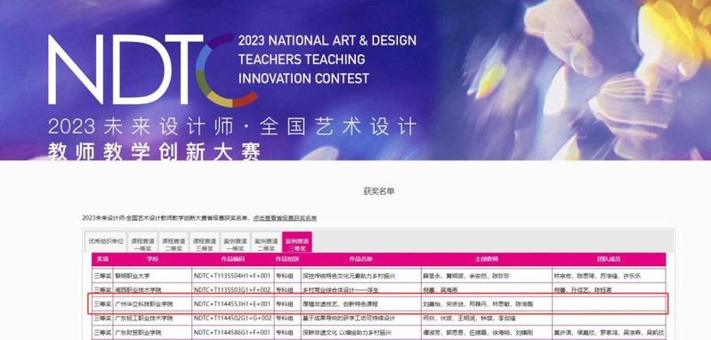 恭喜我院師生隊(duì)伍榮獲“2023年未來(lái)設(shè)計(jì)師全國(guó)藝術(shù)設(shè)計(jì)教師教學(xué)創(chuàng)新大賽”省賽一等獎(jiǎng)和三等獎(jiǎng)