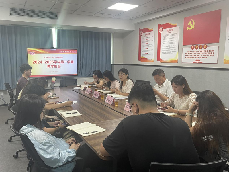 2024 年 8 月 28 日上午,廣州華立科技職業(yè)學(xué)院藝術(shù)與傳媒學(xué)院在西三710A召開了2024-2025學(xué)年第一學(xué)期第一次全體教職工工作會議。明確新學(xué)期的工作方向,統(tǒng)一思想,凝聚力量,共同推動學(xué)院的高質(zhì)量發(fā)展。學(xué)院黨政領(lǐng)導(dǎo)班子成員及全體教職工參加了會議,會議由學(xué)院黨總支書記陳改梅主持。
