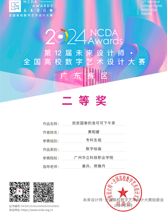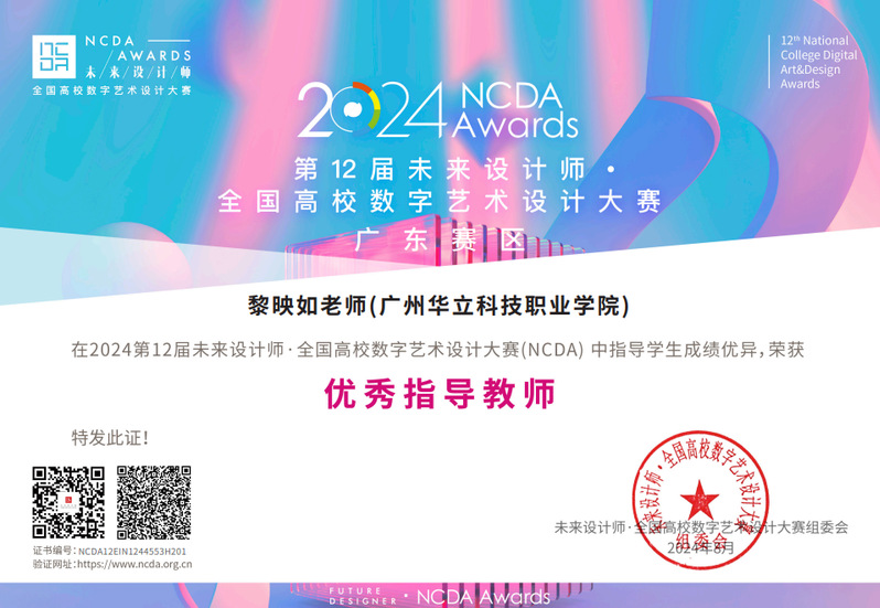 本次大賽自啟動以來,吸引了全國1891所高校的積極參與,共收到作品298763件,設立了29個省級賽區(qū)。經過激烈的校級賽、資格賽、省級初賽、省級決賽及全國總決賽的多輪選拔,我校藝術與傳媒學院師生取得了令人矚目的成績:在全國總決賽中,獲得學生組二等獎1項。在廣東省賽區(qū)獲獎13項,其中學生組一等獎2項,二等獎3項,教師組一等獎1項,二等獎1項,三等獎2項,優(yōu)秀指導教師4項。