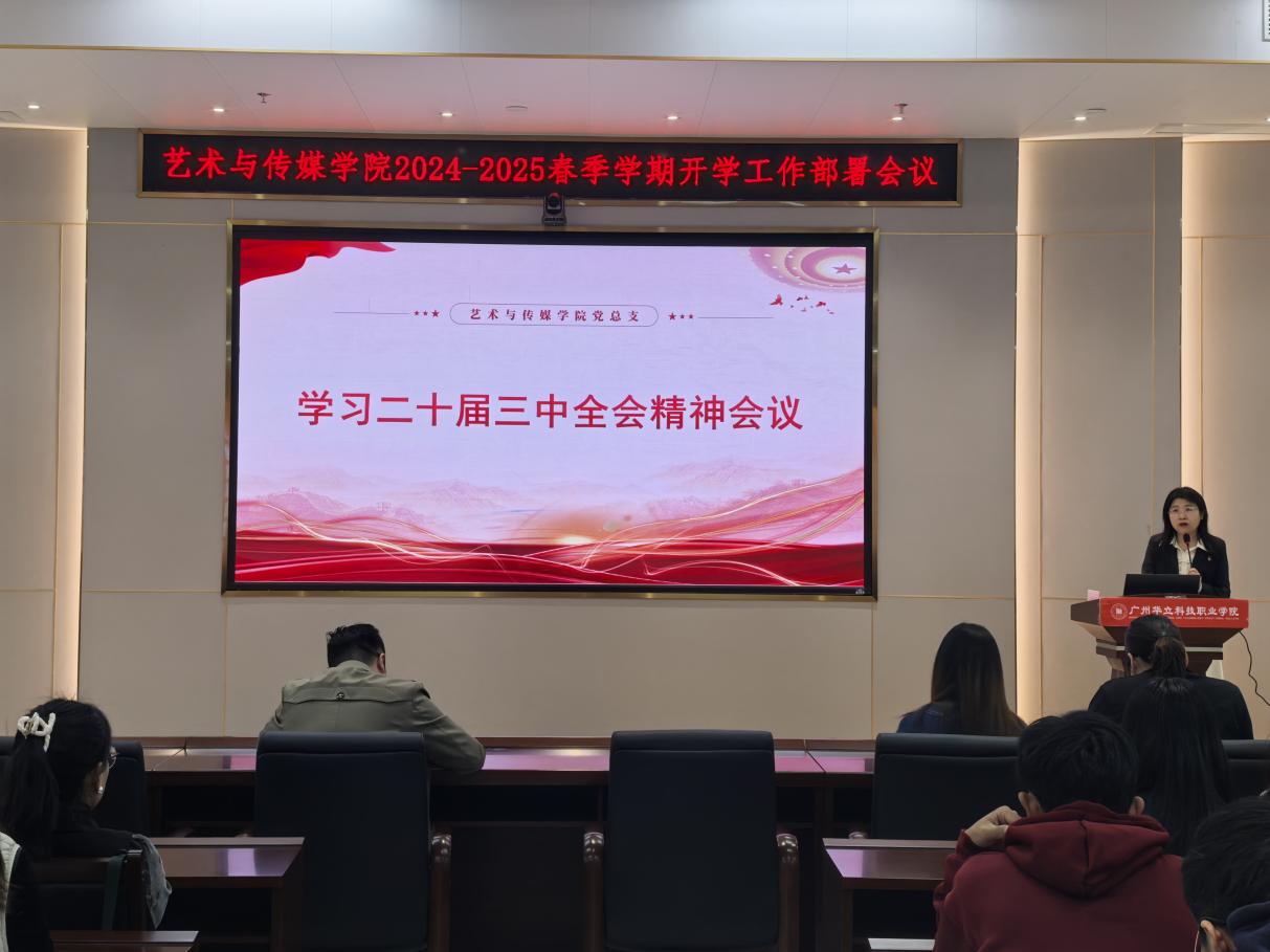 藝術與傳媒學院黨總支書記陳改梅帶領大家學習了黨的二十屆三中全會精神,全面總結了過去一年學院黨建工作成效,系統(tǒng)部署新一年重點任務。