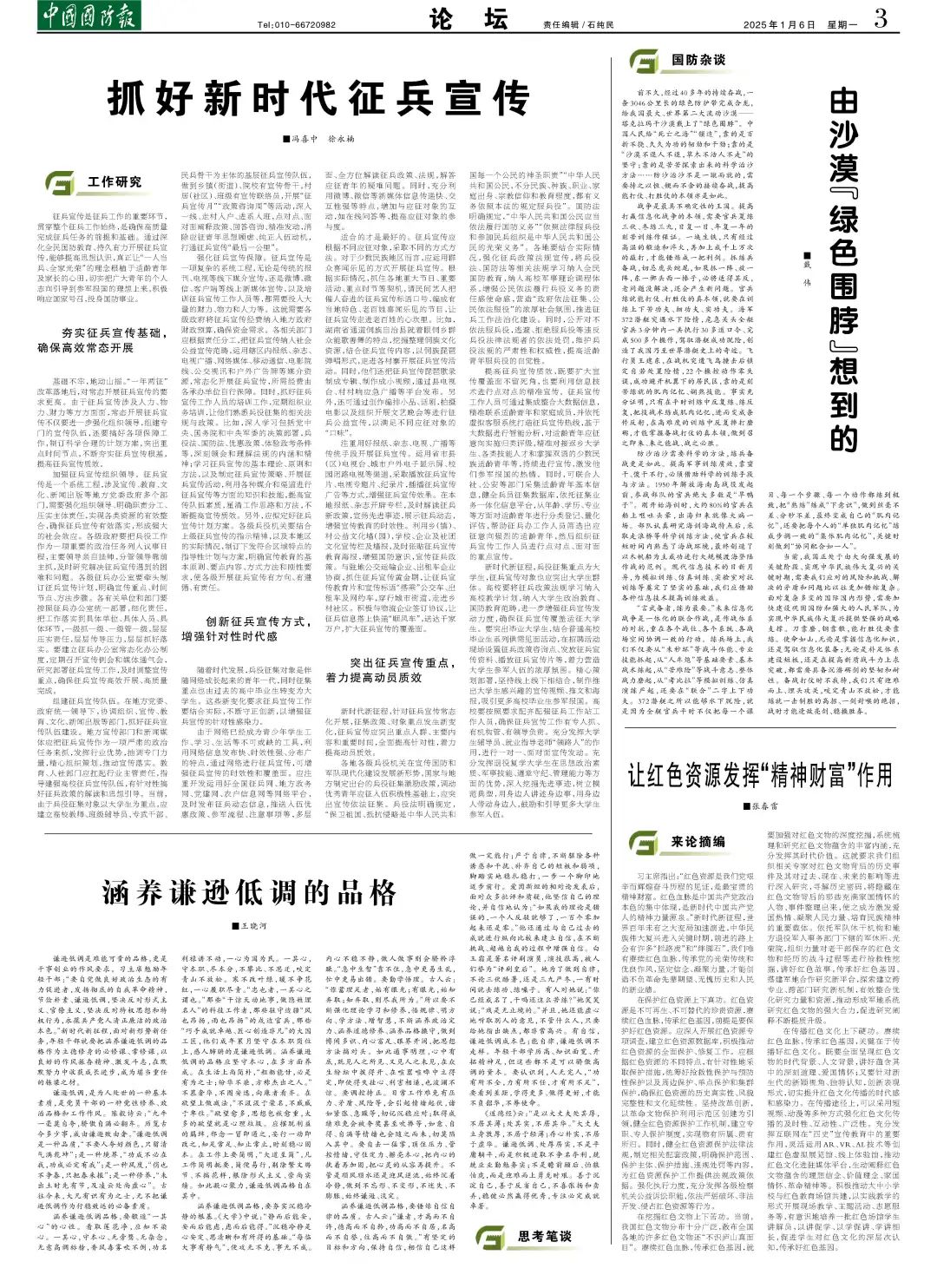 征兵宣傳是征兵工作的重要環(huán)節(jié),貫穿整個征兵工作始終,是確保高質量完成征兵任務的前提和基礎。通過深化全民國防教育、持久有力開展征兵宣傳,能夠提高思想認識,真正讓“一人當兵、全家光榮”的理念根植于適齡青年及家長的心田,切實把廣大青年的個人志向引導到參軍報國的理想上來,積極響應國家號召,投身國防事業(yè)。