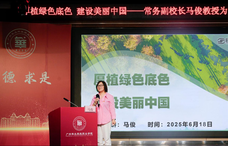 為深入貫徹落實(shí)習(xí)近平生態(tài)文明思想,2025年6月18日晚上6點(diǎn)在圖書館八樓禮堂,廣州華立科技職業(yè)學(xué)院常務(wù)副校長(zhǎng)馬俊教授以“厚植綠色底色 建設(shè)美麗中國”為主題,為藝術(shù)與傳媒學(xué)院師生帶來了一堂別開生面、意義深遠(yuǎn)的思政課。參加此次思政課的有藝傳學(xué)院院長(zhǎng)朱君、全體輔導(dǎo)員、專業(yè)老師以及23級(jí)400左右學(xué)生,藝傳學(xué)院黨總支書記陳改梅主持。