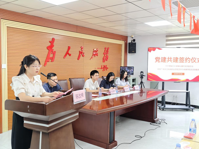 為深入貫徹習(xí)近平新時(shí)代中國(guó)特色社會(huì)主義思想,推動(dòng)基層黨建提質(zhì)增效,2025年7月10日上午,廣州華立科技職業(yè)學(xué)院藝術(shù)與傳媒學(xué)院黨總支與廣州增城仙塘村黨支部在仙塘村村委會(huì)議室舉行黨建共建結(jié)對(duì)儀式。石灘鎮(zhèn)副鎮(zhèn)長(zhǎng)、仙塘村掛村領(lǐng)導(dǎo)劉澤幫,石灘鎮(zhèn)殘聯(lián)主任、仙塘村掛村部門負(fù)責(zé)人黃少瑛,鎮(zhèn)團(tuán)委書記陸沛賢,仙塘村黨支部書記張錦鶯等仙塘村代表出席儀式,此次共建活動(dòng)由藝傳學(xué)院黨總支陳改梅書記主持。