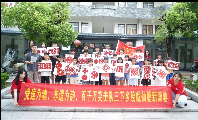為深入貫徹落實廣東省百縣千鎮(zhèn)萬村高質(zhì)量發(fā)展工程部署要求,廣州華立科技職業(yè)學院藝術(shù)與傳媒學院“紙韻繁華守護非遺突擊隊”于2025年7月10日至16日間,赴石灘鎮(zhèn)仙塘村開展暑期三下鄉(xiāng)社會實踐活動。團隊充分發(fā)揮專業(yè)優(yōu)勢,通過剪紙、扎染、漆扇等非遺技藝的沉浸式教學,為鄉(xiāng)村兒童開設(shè)特色非遺課堂,并深入調(diào)研當?shù)胤沁z傳承現(xiàn)狀,以實際行動推動傳統(tǒng)技藝的活態(tài)傳承。