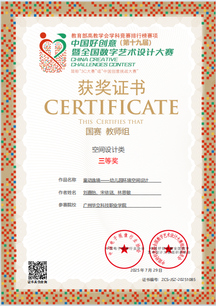 國賽(教師組)空間設計類三等獎證書