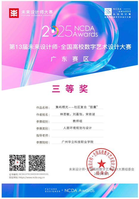 在2025年舉辦的第13屆未來設(shè)計(jì)師·全國(guó)高校數(shù)字藝術(shù)設(shè)計(jì)大賽(NCDA)中,藝術(shù)與傳媒學(xué)院師生憑借其卓越的創(chuàng)意和精湛的技術(shù),榮獲多項(xiàng)大獎(jiǎng)。未來設(shè)計(jì)師·全國(guó)高校數(shù)字藝術(shù)設(shè)計(jì)大賽(NCDA)是入選《全國(guó)普通高校大學(xué)生競(jìng)賽排行榜》,近20家省教育廳認(rèn)定,“學(xué)習(xí)強(qiáng)國(guó)”學(xué)習(xí)平臺(tái)支持,對(duì)接聯(lián)合國(guó)國(guó)際賽的全國(guó)性大學(xué)生競(jìng)賽。是高校教育教學(xué)改革和創(chuàng)新人才培養(yǎng)的重要競(jìng)賽項(xiàng)目之一,具有極高的知名度與影響力。本次大賽是由全國(guó)高校數(shù)字藝術(shù)設(shè)計(jì)專業(yè)委員會(huì)主辦,旨在挖掘和培養(yǎng)數(shù)字藝術(shù)設(shè)計(jì)領(lǐng)域的未來之星,大賽已連續(xù)舉辦13屆,為藝術(shù)設(shè)計(jì)領(lǐng)域的高水平知名賽事,是我院師生積極參與的重要專業(yè)競(jìng)賽之一。